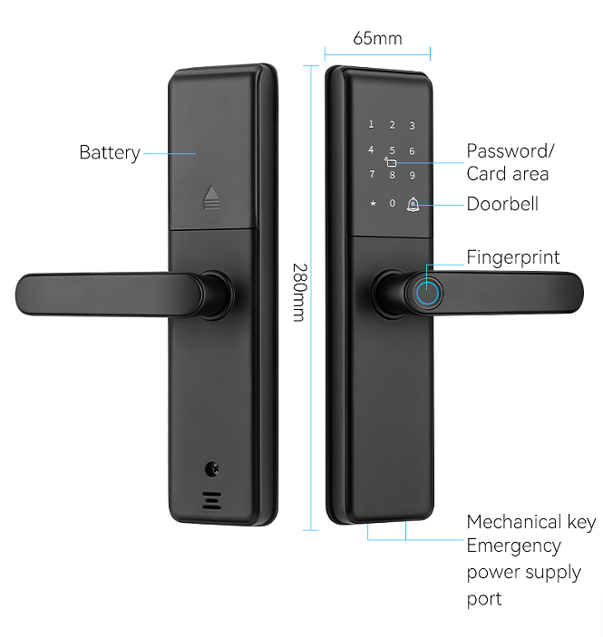 | আনলক উপায়: | Tuya wifi অ্যাপ/TTlock অ্যাপ এবং পাসওয়ার্ড এবং ফিঙ্গারপ্রিন্ট এবং কার্ড ও কী | অ্যাপ: | টুয়া স্মার্ট/টিটি লক |