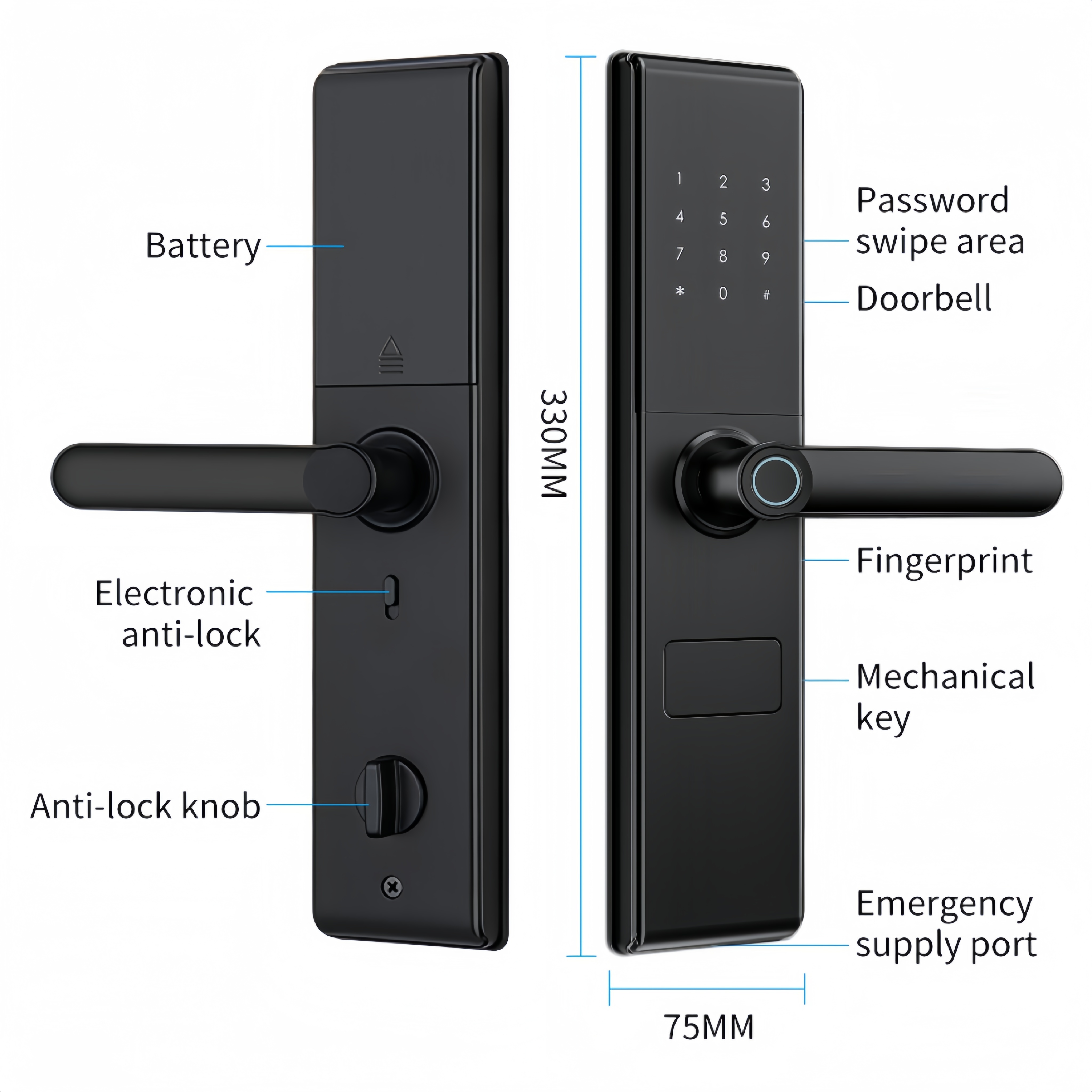 এটি নমনীয়তা এবং সুবিধার জন্য ডিজাইন করা হয়েছে, এটি একটি কম্প্যাক্ট ডিভাইসে আঙুলের ছাপ, পাসকোড, কী কার্ড, যান্ত্রিক কী এবং অ্যাপ্লিকেশন নিয়ন্ত্রণ সরবরাহ করে।
