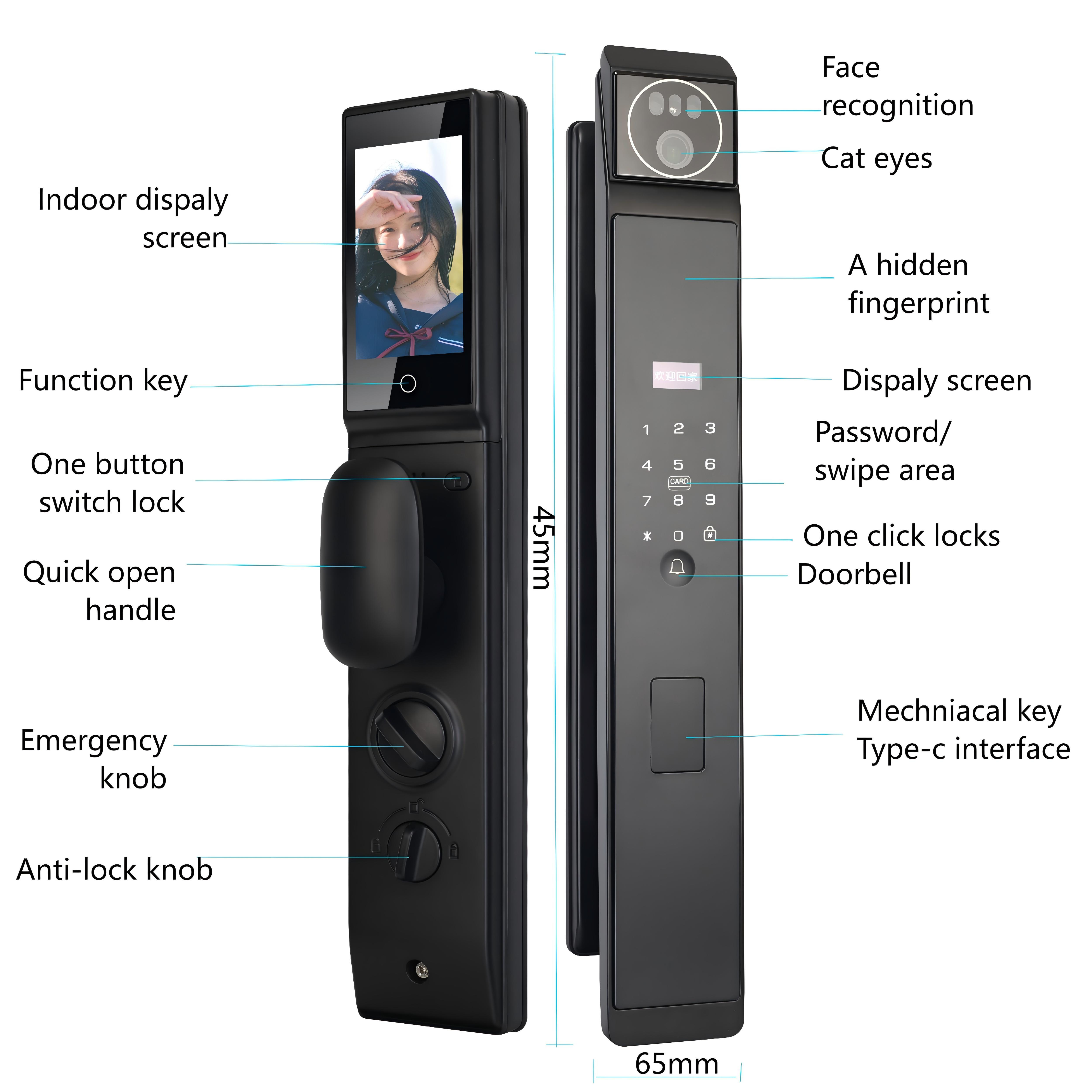 | ওজন: | 5.5 কেজি | আনলক উপায়: | ফেস/পাম/ফিঙ্গারপ্রিন্ট/পাসওয়ার্ড/কার্ড/কী/তুয়া অ্যাপ |