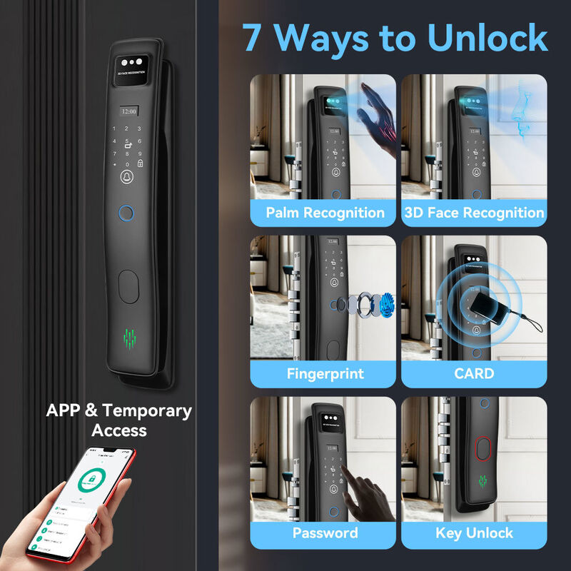 | লক সিলিন্ডার স্তর: | ক্লাস সি সেফটি লক সিলিন্ডার | পথ খোলা: | 3D FACE+PALM VEIN+Tuya সক্রিয় ভিডিও কলিং+পাসওয়ার্ড+কার্ড+কি+Tuya অ্যাপ |
